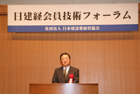 本フォーラムは日建経会員会社の技術者の方々が一同に会して、工事事例の発表・討議を行い、技術や技術開発への関心を高めるとともに、情報の発信、技術力の向上などを目的に毎年開催されており、徳倉社長が(社)日本建設業経営協会会長を務めています。