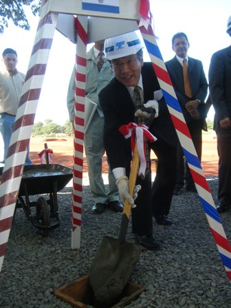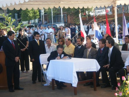 起工式典書に署名する在パラグアイ・飯野日本国大使