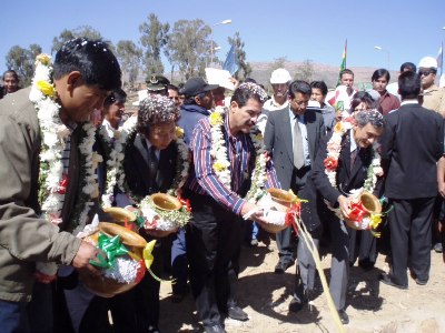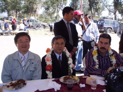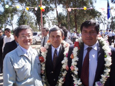 起工式には、コチャバンバ県知事マンフレッド・レイエス・ビリャ氏、在ボリビア国白川大使がご臨席され、当社からは徳倉社長が参加しました。