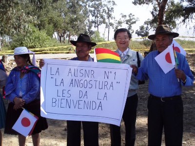 徳倉社長、白川大使と地域水利組合理事長ロチャ氏