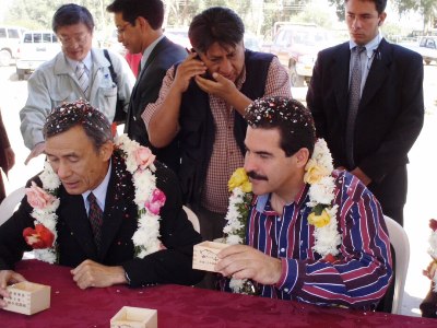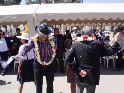 民族舞踊クエカを披露するマンフレッド知事と白川大使