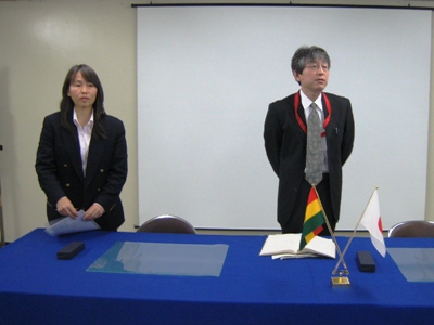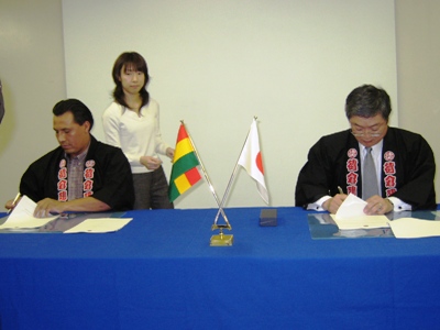 2007年12月14日(金)、徳倉建設本社(名古屋)にて、ボリビア国コチャバンバ県灌漑施設改良工事(2期)の契約調印式が行われた。