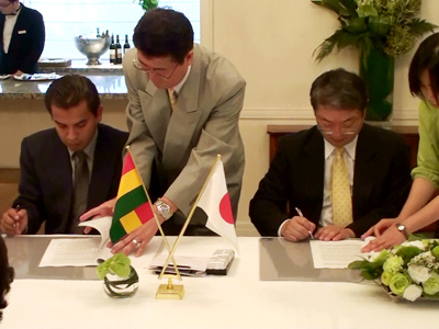 当社は、日本政府の無償援助案件である、「ボリビア国マンセスペ音楽学校建設」工事を、入札により受注し、8月21日に契約調印式を行った。