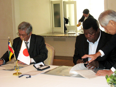 当社は、日本政府の無償案件である、「中央アフリカ共和国小学校建設計画」工事を、入札により受注し、4月9日に契約調印式を行った。