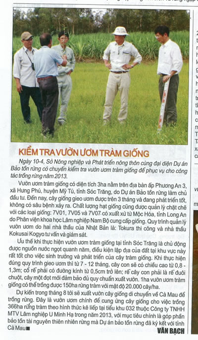 「2013年3月28日付 DARD(カマウ省 農業開発局)新聞HP掲載記事」