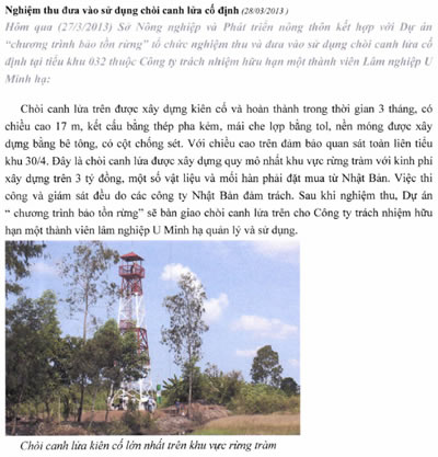 ・この火災監視塔工事が、地元カマウ省のローカルTVのホームページ記事にて紹介されました。