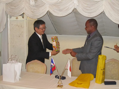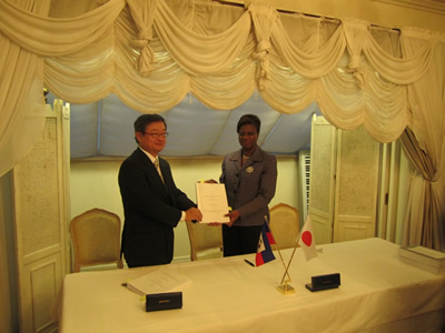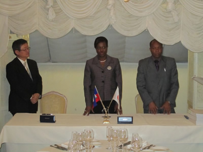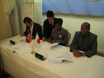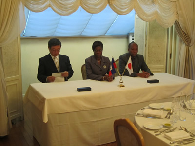 2014年5月21日午後6時30分、表参道レストラン・バンブー(当社施工)にて「ハイチ共和国 南東県ジャクメル病院整備計画」調印式が執り行われました。