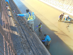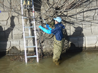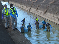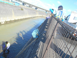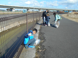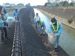 私は用水路内のゴミ拾いを担当。用水路は濁ってましたが水嵩はない。