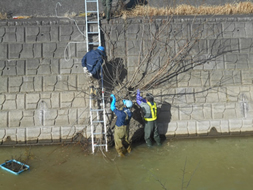 第30回『葛西用水路』ボランティア活動の報告報告者:東京支店 営業部 中村正和 30回目を迎えるボランティア活動に初めて参加しました。 天気は良好。前日雪がチラつく予報があったにも関わらず、少々風があるものの晴天に。 朝9時30分JR白岡駅に土木の水元副支店長、久保部長、大木副部長と待合せをし集合場所の琵琶溜井記念館へ。
