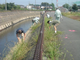 今回のボランティア活動は、その後に生えてきた草を刈り取る事と葛西用水周辺のゴミ拾いの為に10月4日(土)に行いました。