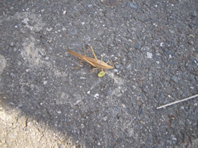 前回同様、今回の珍客と応援団はこの時期珍しいバッタと散歩中のダックスフンド、部活トレーニング中の地元中学生達でした。