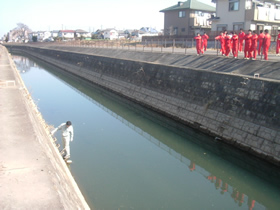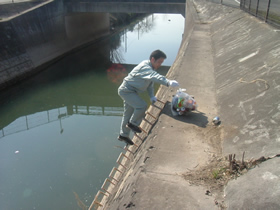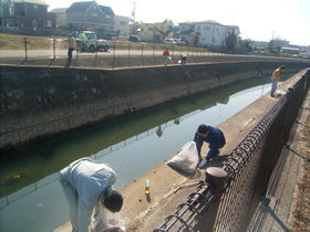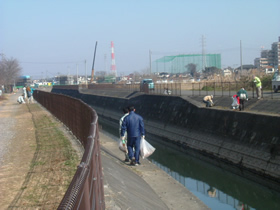今回の活動は左岸側、右岸側に作業チームを2班にわけてゴミ拾い等の清掃を行いました。