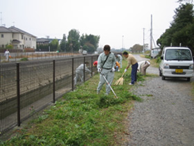 用水路脇に背丈1mほどの草がたくさん生えていましたが、皆さん一丸となって草刈りを行いました。今回は心地よい気象環境の中、気持ち良く、充実した活動ができたと自負してます。