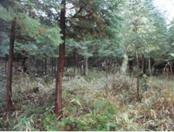 前回の林分調査の結果、今回は再度の林分調査と当面の作業は枝打ち、除伐、下草刈としました。