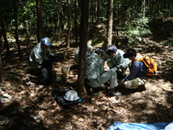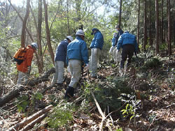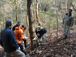 平成25年5月26日に第2回徳倉・森の教室が行われて半年たちました。企業の森づくり活動は10月に計画していましたが、悪天候のため中止となったため、約半年ぶりの活動になりました。今回は7名の参加があり、今までの活動延べ参加者数は217名となりました。天候がよく秋の高い空が印象的でした。今回は活動期間が開いたので、まずは現地の様子を確認しました。特に異常はありませんでしたが、枯れ葉や枯れ木が沢山落ちていて冬の到来を感じさせます。椎茸はほとんど収穫できなくなっていて、ほだ木はスカスカになっていました。また新しく栽培しようというメンバーの声が多かったため次回から椎茸栽培を行います。メンバー全員で枝打ちを行い、活動の感触を取り戻しました。最後は清掃美化活動を行い、活動を終了しました。