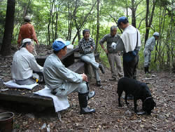 前回の活動から半年たち久しぶりの活動になりました。今回は8名+愛犬一匹の参加があり、今までの活動延べ参加者数は245名となりました。天候がよく秋の高い空が印象的でした。今回は11月23日に予定している第3回徳倉・森の教室の内容について話し合いました。まずは散策路の確認と整備を行い、次に木工クラフトの作成を予定していますので、宿題であった松ぼっくりやドングリ等の素材の確認を行いました。最後は清掃美化活動を行い、活動を終了しました。