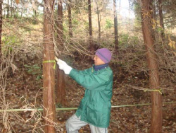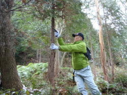新たな区画で林分調査を行ないました。結果はまたも間伐の必要なしです。広葉樹を伐らずに植林をしため、陰になったり、邪魔になったりして成長が遅いためと考えられます。今後は除伐や枝打ちをしばらく続けます。