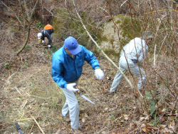作業は沢の刈り払いのほか沢の西側の枝打ち、除伐をしました。