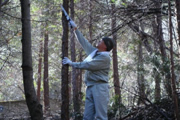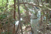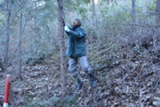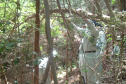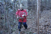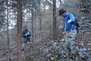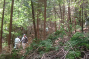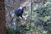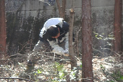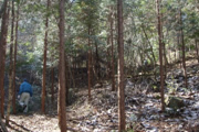 今年の2回目です。啓蟄を翌日に控え、心なしか芽生えの音やにおいがするようです。参加者は急遽呼びかけたので9人と犬一匹。新会員1人も参加。今回は残る区域の枝打ち、除伐をすることにしました。尾根に近い斜面で勾配が急になりもともとの広葉樹が多くヒノキの植林本数も少なくなっていました。あと2回ほどで完成の見込みです。今後は広葉樹と植林したヒノキの地上での立ち位置と梢での日照権の争いに目をつけて、みなで相談をしてどちらかを伐るということにしたいと思います。又今日光が入っているギャップもよーく観察したいと思います。そこで今まで間伐・除伐したくずを、幹は玉切り、枝は積んで藪にするなど整理する必要もあります。