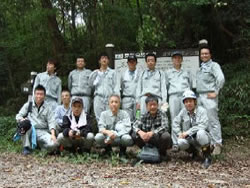 2ヶ月半ぶりの山入りです。今回は13名の参加があり、本店長を始め土木の現場職員も多く参加いただきました。今までの活動延べ参加者数は166名となり、社内的に認知されつつあります。今回は初めての参加者も多いことから、活動前にエリアの位置と活動内容の説明を行いました。