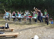 午前は事務所長の挨拶、課長の説明、企業の自己紹介など、昼休みはちょっとしたゲームです。細い間伐材を切って2kgにもっとも近い人が表彰されるというものです。1位は1.99kgとすばらしいものでしたが、わが徳倉建設は恥ずかしながら過大のほうで3位になりました。なかなか手軽で面白いゲームです。また作業を終えてからは森のコンサートです。スチールパンというドラム缶に起源を持つ珍しい楽器です。パンソニドール?という名古屋からきたチームの演奏です。ラテン音楽がぴったりでおよそ30分間、できあいのマラカスを振り、腰も振って踊り大いに楽しみました。